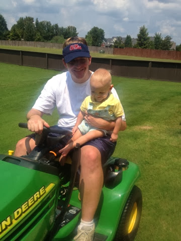We got to the game in time to see the players and the band on the field. Will was clapping and smiling so big like he knew where he was. It was awesome! He did good throughout the game even though it was HOT. We sit with my parents and my sister, Mary and her husband John so between the 6 of us Will had plenty of hands on people to entertain and be passed down the row. He is a busy body these days so we did our best to entertain him. He got hungry so we got him a hot dog (his all time favorite thing to eat) and then my mom and I left with him at half time and walked back to the condo. Doug and Dad got home later that night with all of our stuff and Will and I were gone to bed because we were TIRED!