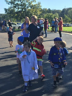 HBC day school celebrated Community Helper week by ending with a fun Community Helper parade. Will was so excited about the parade and excited to be a firefighter. He marched in the parade like a star. I was able to sneak away from work to watch the parade with Luke and his class. Luke had so much fun watching Will and seeing all the police cars and firetrucks there. It was a fun day.